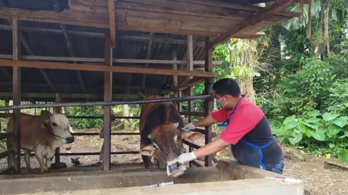 Ilustrasi - Petugas dari Dinas Pertanian Pangan dan Perikanan Kota Pariaman, Sumbar memeriksa kesehatan hewan. Antara/HO-DPPP Kota Pariaman