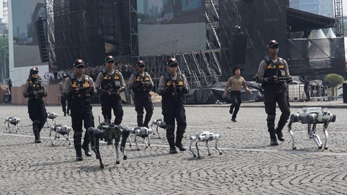 JAKARTA, RADARSUMBAR.COM – Kepolisian Negara Republik Indonesia (Polri) memamerkan kemampuan teknologi robot K9 (dog) untuk mendeteksi bahan peledak dan zat berbahaya dalam simulasi penanganan kejahatan pada puncak peringatan Hari Ulang Tahun (HUT) ke-79 Bhayangkara di kawasan Monas, Jakarta Pusat, Selasa (1/7/2025).