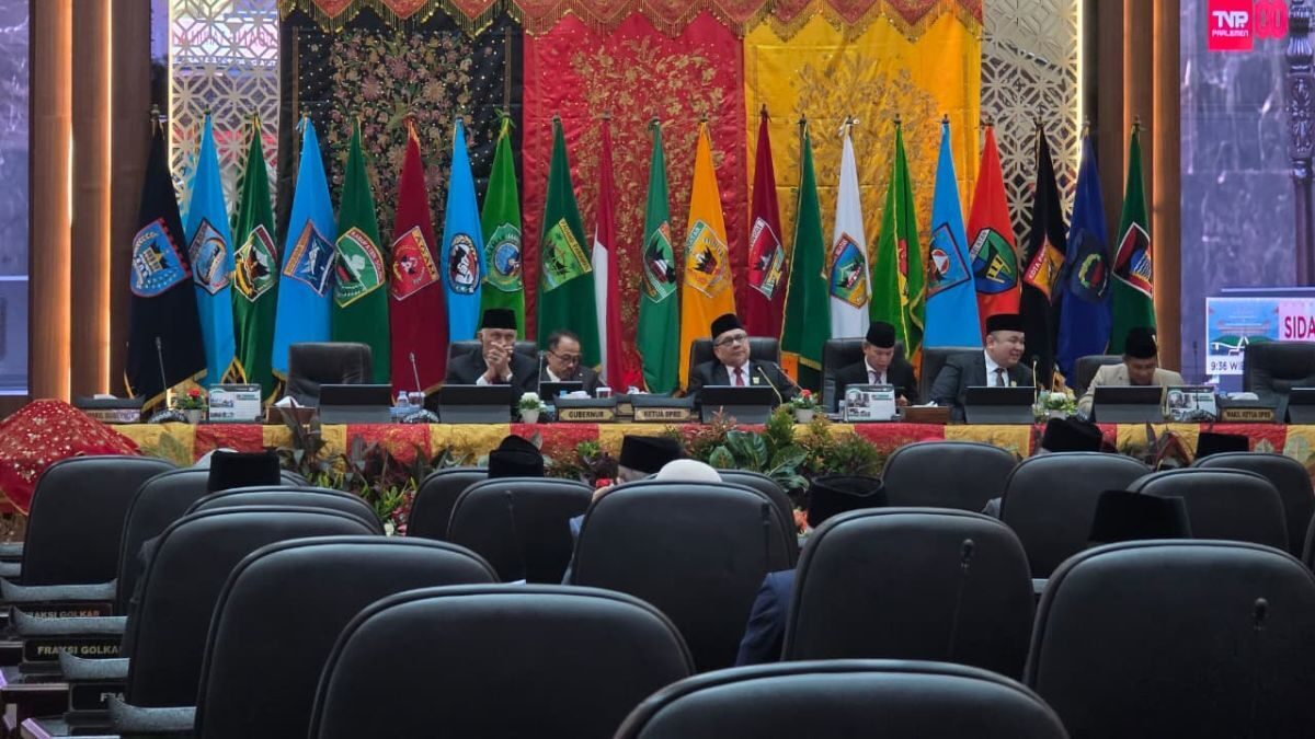 Sidang berlangsung di Ruang Sidang Utama DPRD Sumbar, dipimpin oleh Ketua DPRD Muhidi, dan dihadiri jajaran Forkopimda, unsur pimpinan serta anggota DPRD, kepala OPD, dan pimpinan instansi vertikal di Sumbar.