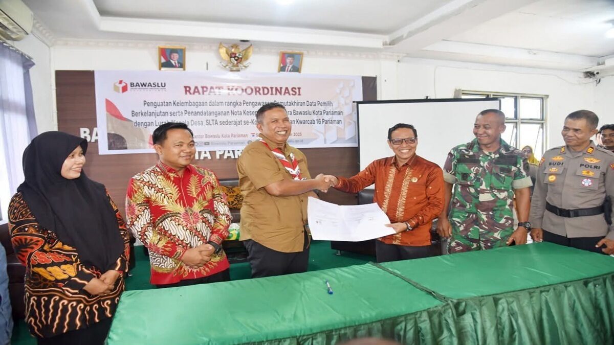 PARIAMAN, RADARSUMBAR.COM – Wakil Wali Kota Pariaman, Mulyadi, menandatangani Nota Kesepahaman (MoU) bersama Bawaslu Kota Pariaman dalam Rapat Koordinasi Penguatan Kelembagaan untuk Pengawasan Pemutakhiran Data Pemilih Berkelanjutan. Kegiatan ini digelar di Kantor Bawaslu Kota Pariaman, Kelurahan Kampung Perak, Kecamatan Pariaman Tengah, Selasa (23/9/2025).