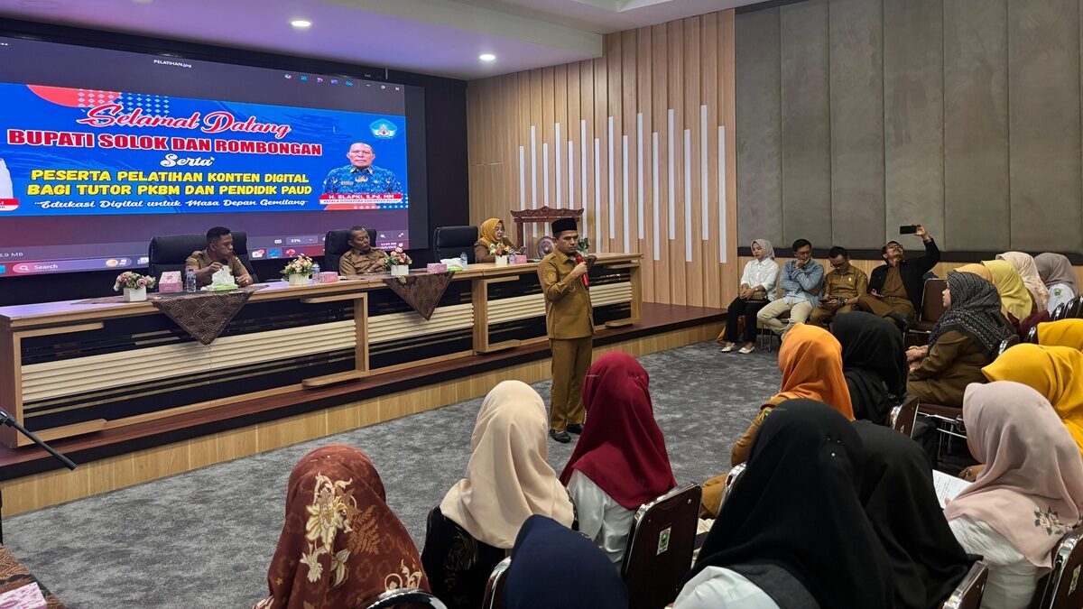AROSUKA, RADARSUMBAR.COM – Pemerintah Kabupaten Solok melalui Dinas Pendidikan, Pemuda, dan Olahraga (Disdikpora) menunjukkan komitmen dalam mendukung Gerakan Nasional Literasi Digital. Salah satu langkah nyatanya adalah dengan menggelar Pelatihan Pembuatan Konten Digital bagi Guru Pendidikan Anak Usia Dini (PAUD) dan Pengelola Pusat Kegiatan Belajar Masyarakat (PKBM).