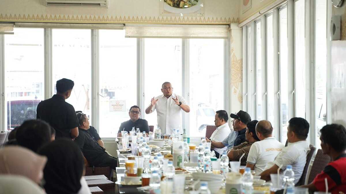 PADANG, RADARSUMBAR.COM – Penasihat tim Semen Padang FC, Andre Rosiade, menggelar pertemuan dengan puluhan suporter tim Kabau Sirah di Rumah Makan Silungkang, Senin (3/11/2025). Pertemuan ini digelar untuk memperbaiki komunikasi antara suporter dan manajemen klub, sekaligus meluruskan berbagai tudingan yang tidak benar terhadap dirinya. Sejumlah kelompok suporter hadir, di antaranya Spartacks, The Kmers, dan Padang Fans.