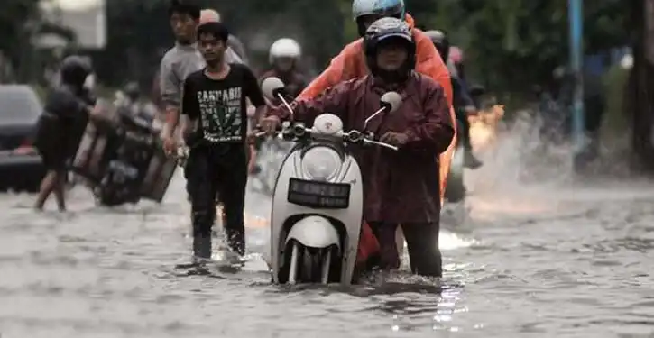 Motor mogok saat menerobos banjir. (Foto: Ist)