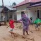 Material tanah dan bebatuan menutup badan jalan di dua titik sehingga kendaraan tidak dapat melintas secara normal.
