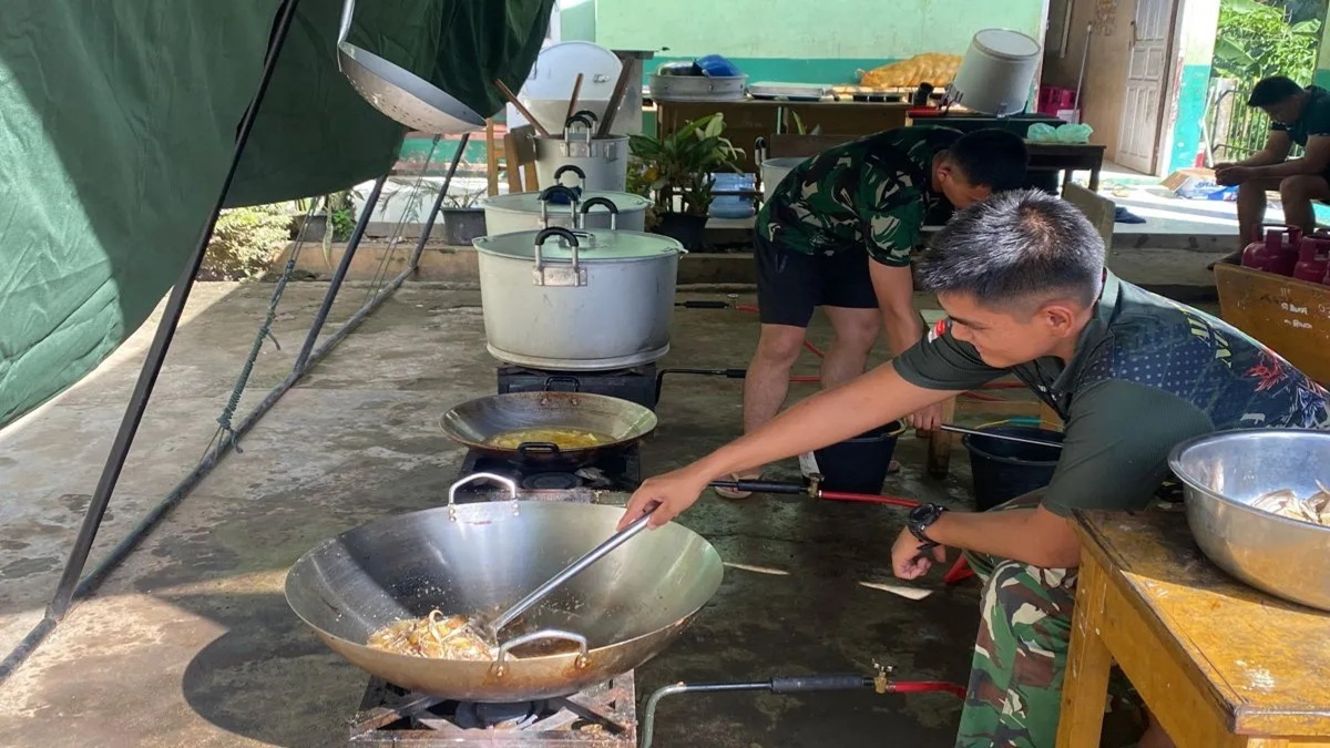 Kepala Tim Dapur Lapangan Palembayan Perbekalan dan Angkutan (Bekang) Kodam XX/Tuanku Imam Bonjol, Lettu CBA Apri Azis, mengatakan dapur umum menyediakan makanan tiga kali sehari bagi para penyintas.