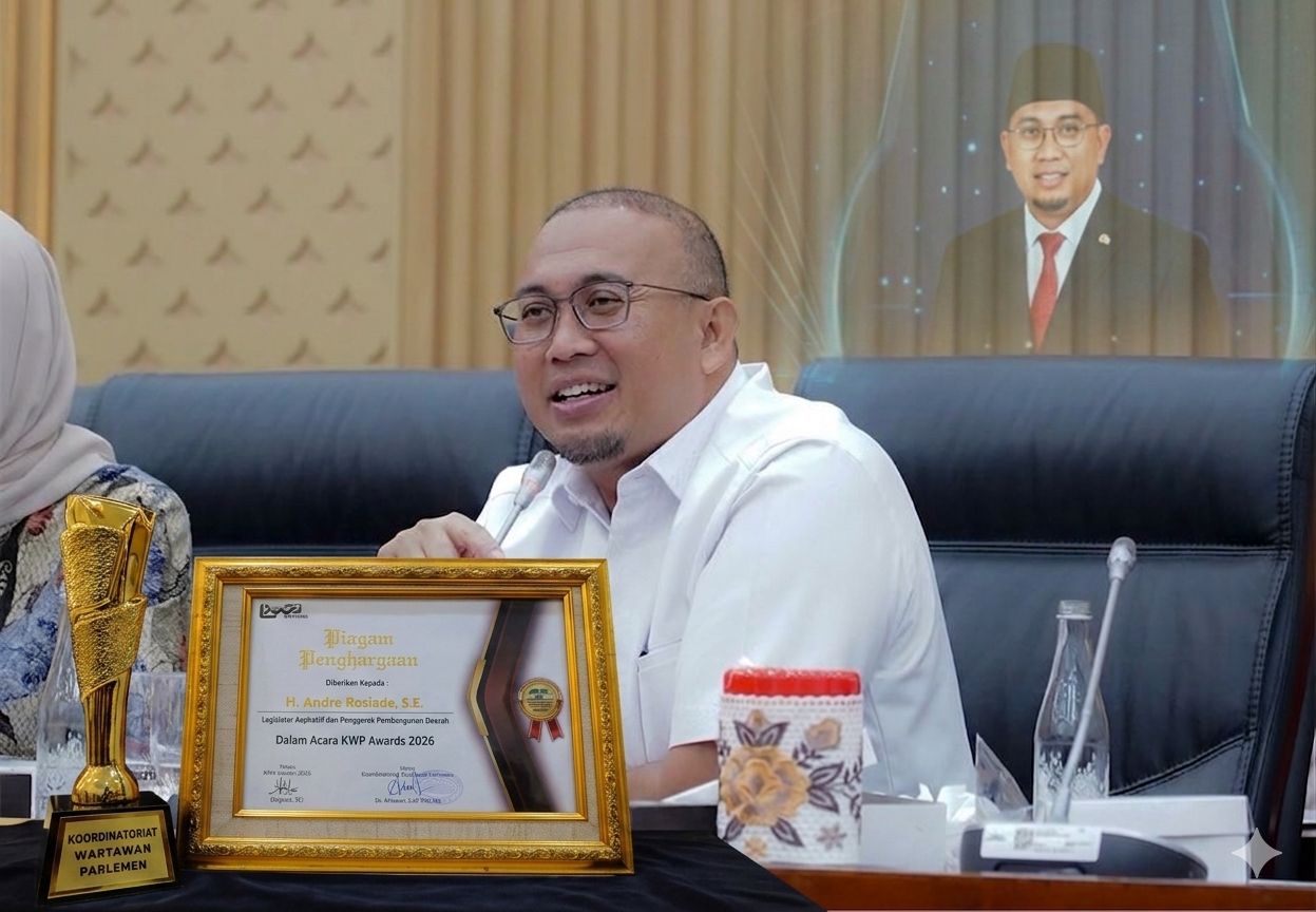 Penghargaan tersebut diberikan sebagai bentuk pengakuan atas konsistensi Andre dalam mengawal berbagai proyek strategis nasional di daerah pemilihannya serta keberaniannya menyuarakan aspirasi masyarakat Sumatera Barat di tingkat pusat.