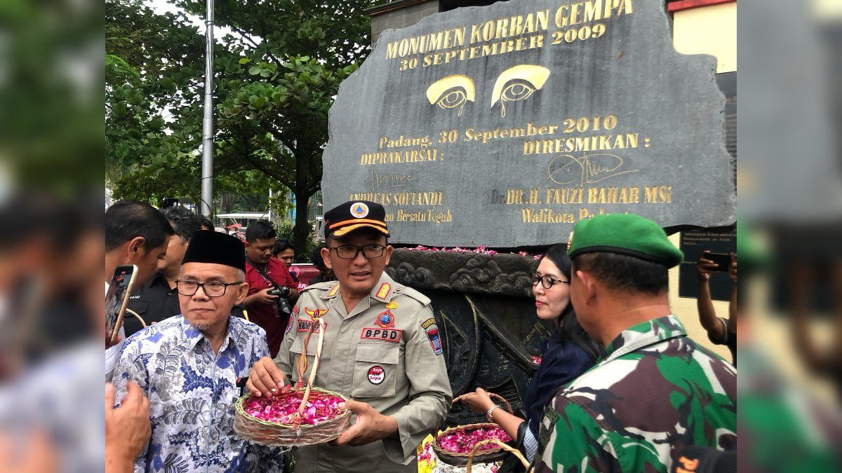 Hadir juga dalam kesempatan itu, Kalaksa BPBD Sumbar Rudy Rinaldy, Forkopimda Kota Padang, Kepala Stasiun Geofisika BMKG Padang Panjang Suaidi Ahadi serta Anggota DPRD Kota Padang Mastilizal Aye. Pemrakarsa Pembuatan Tugu Gempa Andreas Sofiandi.