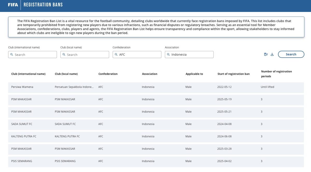 Pencabutan sanksi tersebut diketahui melalui unggahan resmi di laman FIFA Transfer Matching System (TMS) pada Kamis, 3 Juli 2025.