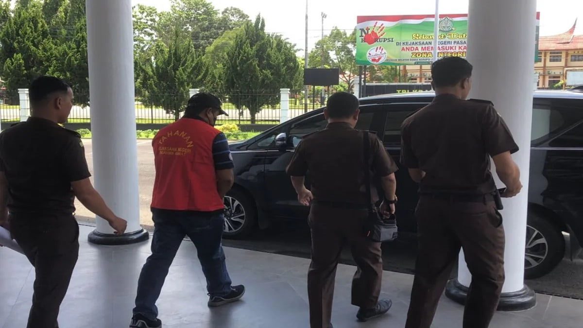 Kejaksaan Negeri Pasaman Barat, Sumatera Barat saat membawa terdakwa pemodal penambang emas tanpa izin Dominikus Suprianto panggilan Supri alias Dimas (50) untuk ditahan. (Antara)