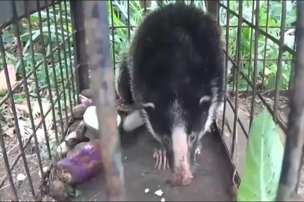 Setelah berhasil ditangkap, hewan yang bulu di badannya dominan berwarna hitam bercorak putih tersebut, dimasukkan ke dalam kerangkeng besi. Selanjutnya diserahkan ke Balai Konservasi dan Sumber Daya Alam (BKSDA) Kabupaten Solok.