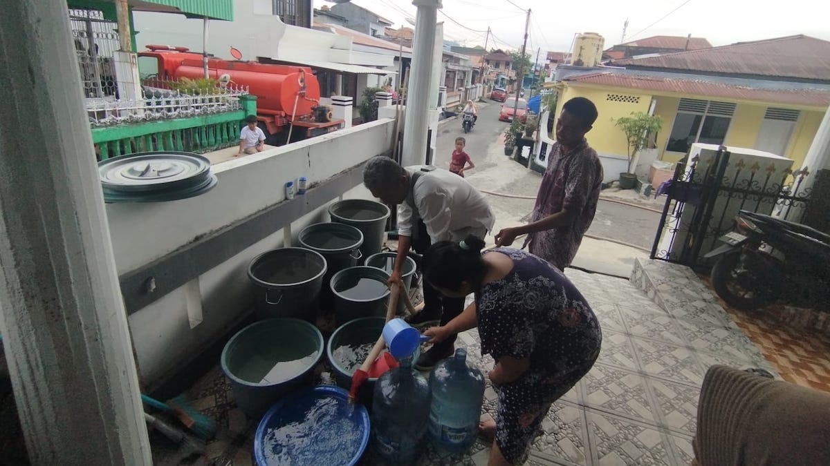Penyaluran air bersih di lokasi setempat dilakukan sekitar pukul 16:00 WIB oleh petugas BPBD dengan volume air mencapai 2.000 liter.