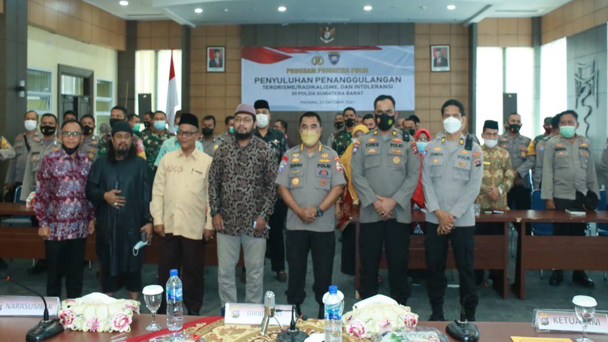 PADANG, RADARSUMBAR.COM – Direktorat Pembinaan Masyarakat (Ditbinmas) Polda Sumbar mengadakan Focus Group Discussion (FGD) terkait penanggulangan Terorisme/Radikal dan Intoleransi di Polda Sumbar, Kamis (21/10/2021) di ruang Jenderal Soekanto Mapolda Sumbar.