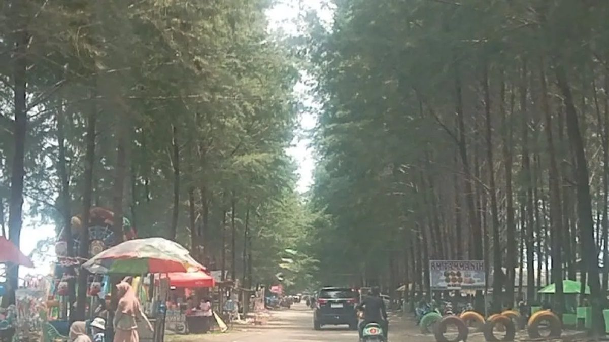 Deretan pohon mahoni di objek wisata Pantai Sasak Pohon Seribu yang menjadi andalan wisata pantai di Kabupaten Pasaman Barat. (Antara/Altas Maulana).