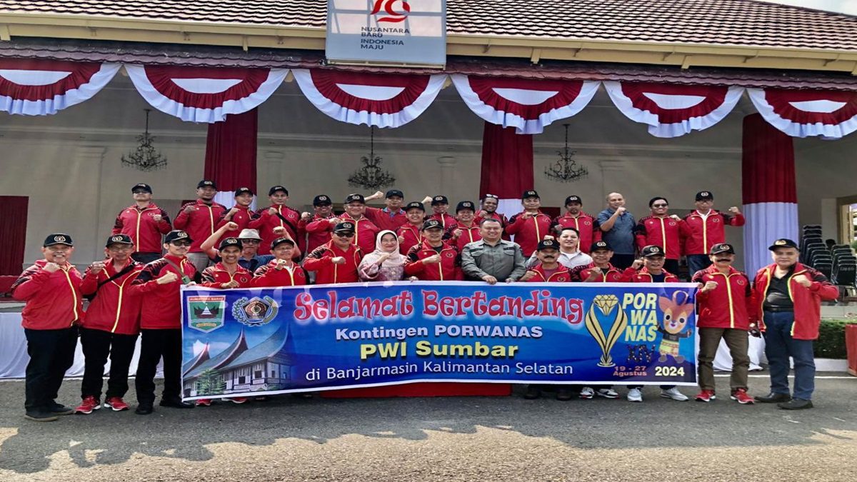 PADANG, RADARSUMBAR.COM – Sebanyak 32 orang atlet Pekan Olaharaga Wartawan Nasional (Porwanas) Persatuan Wartawan Indonesia Sumatera Barat (PWI Sumbar) dilepas oleh Gubernur Sumatera Barat Mahyeldi Ansharullah diwakili Kepala Dinas Komunikasi, Informasi dan Statistika Sumbar Siti Aisyah, Ahad, 18 Agustus 2024, bertempat di Istana Gubernur Sumbar.