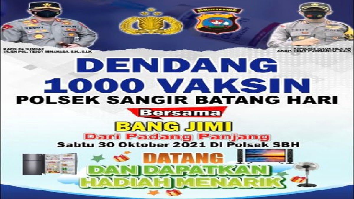 Vaksinasi bertajuk dendang 1.000 vaksin ini akan melibatkan Bang Jimi dari Kota Padangpanjang. Vaksinasi tersebut akan diadakan besok dan bertabur hadiah.