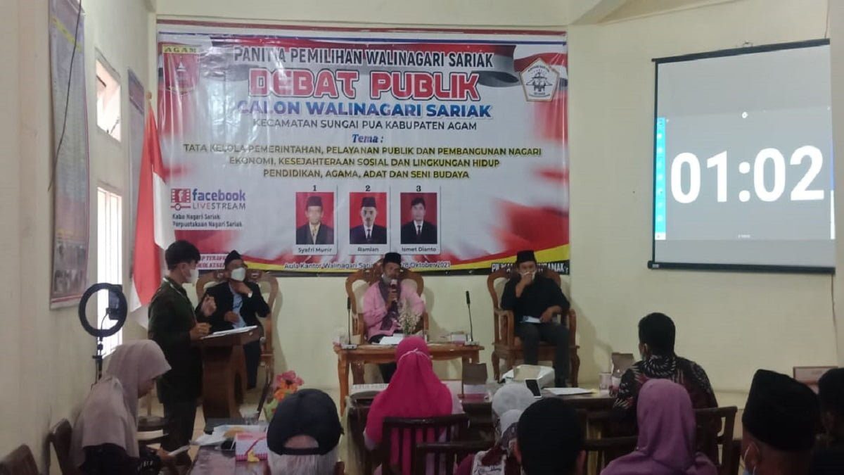 Tiga orang calon Wali Nagari Sariak tersebut adalah Syafri Munir (nomor urut 1), Ramlan (2), dan Ismet Dianto (3). Debat kandidat yang berlangsung hangat itu dipimpin oleh moderator, Abdul Karim, yang juga merupakan anggota Panitia Pemilihan Wali Nagari setempat.