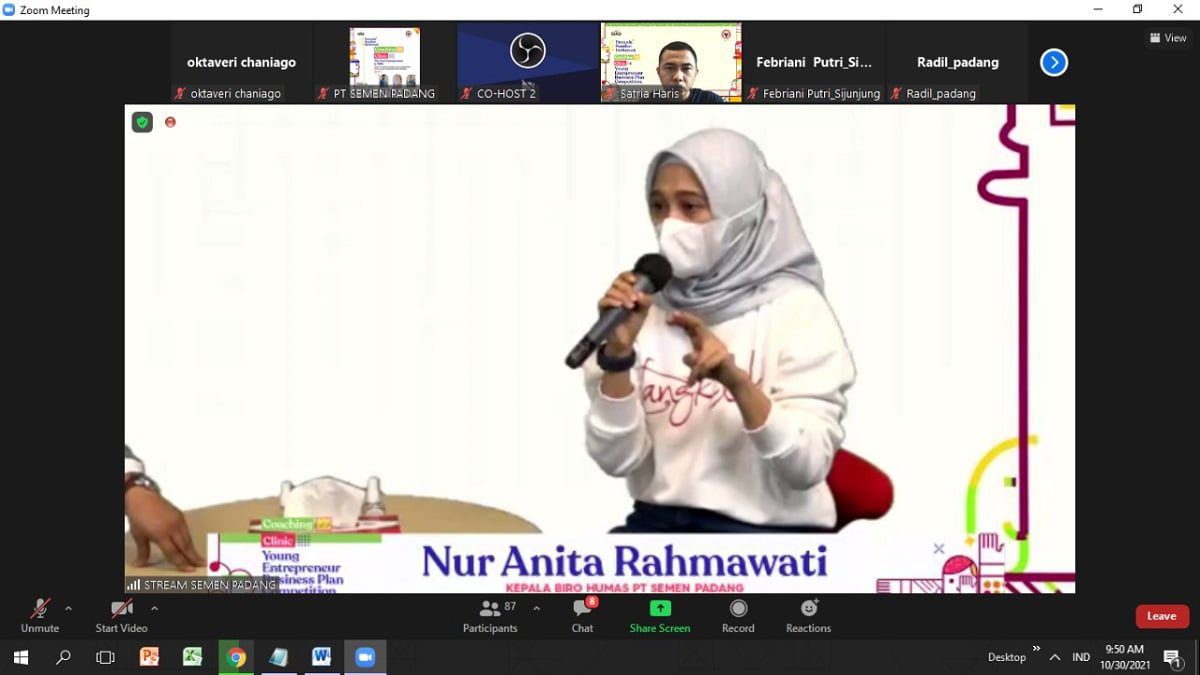 “Coaching clinic bagi calon entreprenuer muda di Sumbar ini juga merupakan bentuk dukungan PT Semen Padang dalam menyukseskan program 100 Ribu Entrepreneur milenial yang digagas oleh Bapak Wagub Sumbar Audy Joinaldy,” kata Nur Anita yang turut menjadi pemateri dalam coaching clinic virtual tersebut.