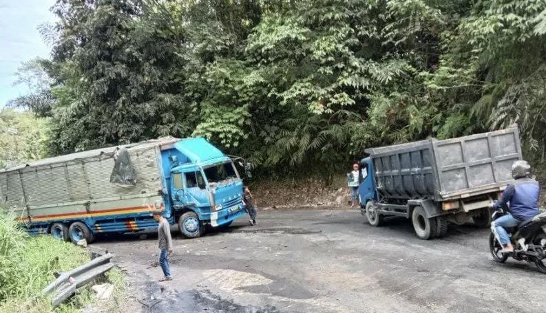 “Setiba di TKP itu truk ini tidak kuat mendaki tanjakan tersebut sehingga mundur dan rebah ke kanan dan pada hari ini pukul 13.00 WIB mobil tersebut telah di evakuasi,” kata Kasatlantas.