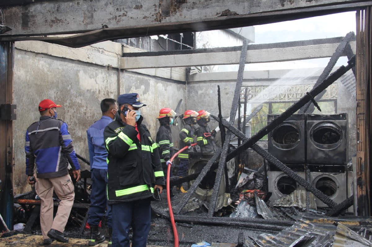 Tak sampai di situ sambung kapolsek, api tambah membesar dan menjalar ke kios listrik Podomoro yang ada di sebelahnya. Kios ini juga dalam keadaan tutup.