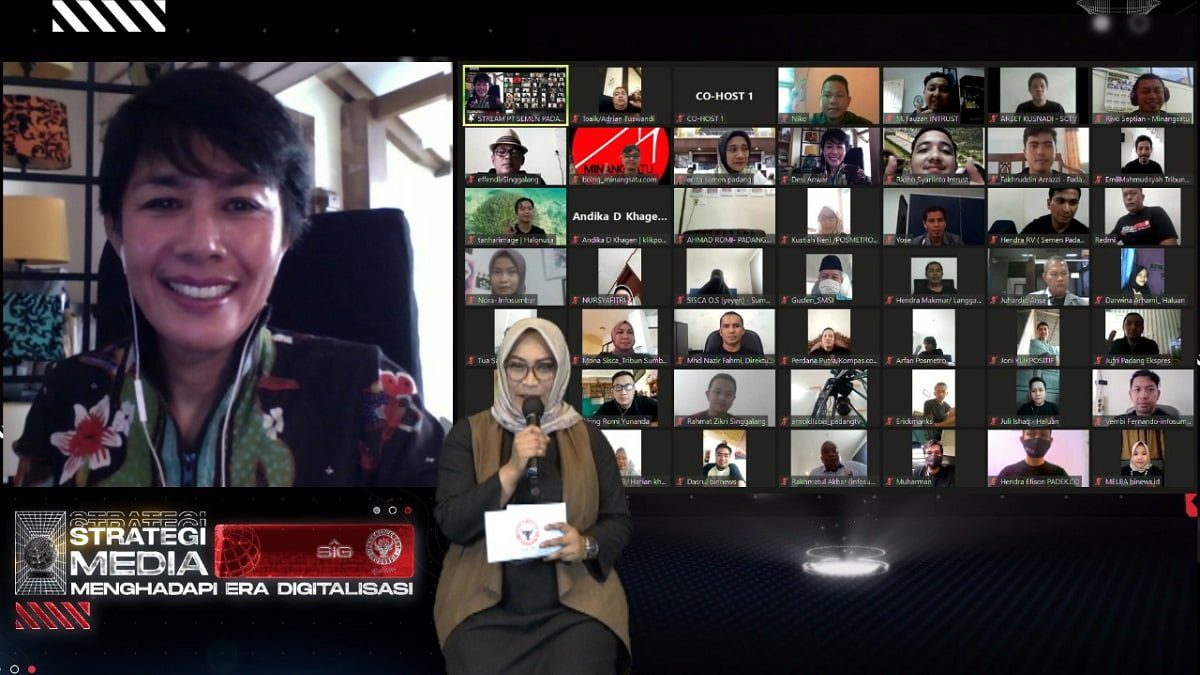 PADANG, RADARSUMBAR.COM – PT Semen Padang menggelar media gathering (spesial event bersama media) virtual melalui aplikasi zoom bersama ratusan wartawan dari berbagai media cetak, online dan elektonik di Sumbar, dengan tema “Strategi Media Menghadapi Digitalisasi”, Selasa (30/11/2021).