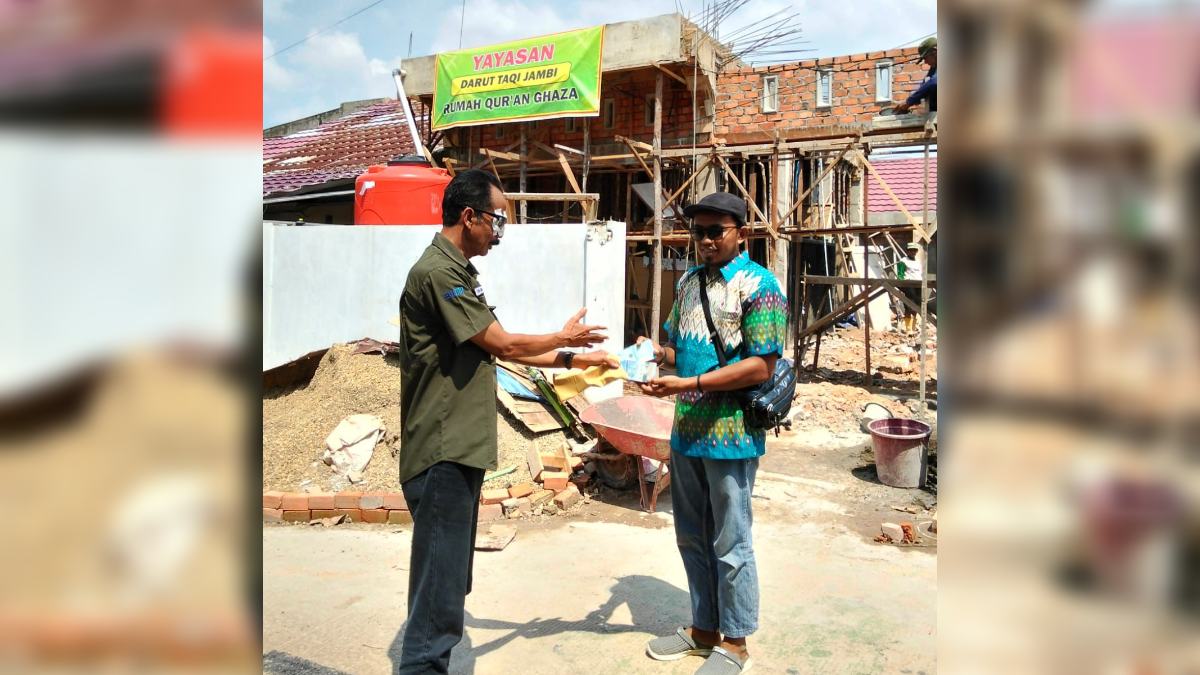 Bantuan untuk pembelian material bangunan Rumah Tahfidz Qur’an Ghaza ini, diterima langsung pengasuh Rumah Qur’an Ghaza, Ustad M Fahmi dan Ketua Yayasan Daarut Taqi, Ny Rusi Maya Sari di lokasi pembangunan Rumah Qur’an Ghaza Komplek Mendalo Hill Lorong Ghaza desa Mendalo Darat, Muarojambi, pada Rabu (16/10/2024).