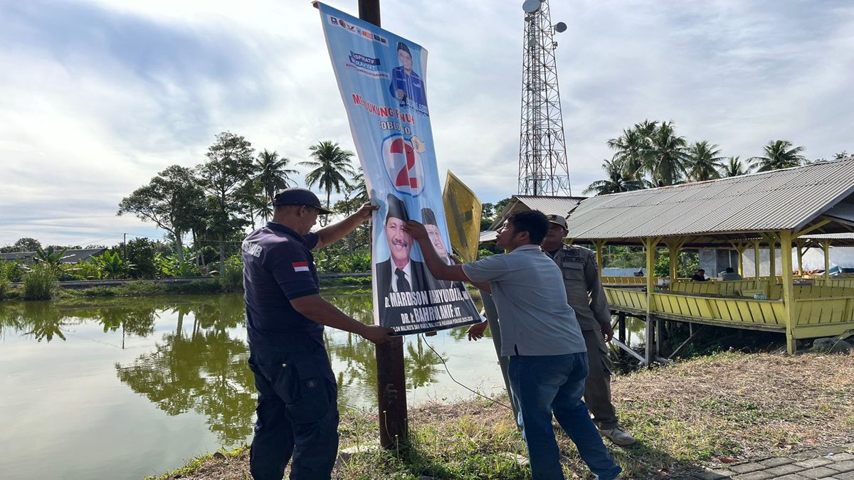 Bawaslu Pariaman menertibkan ratusan alat peraga kampanye yang melanggar. (Foto: Dok. Istimewa)