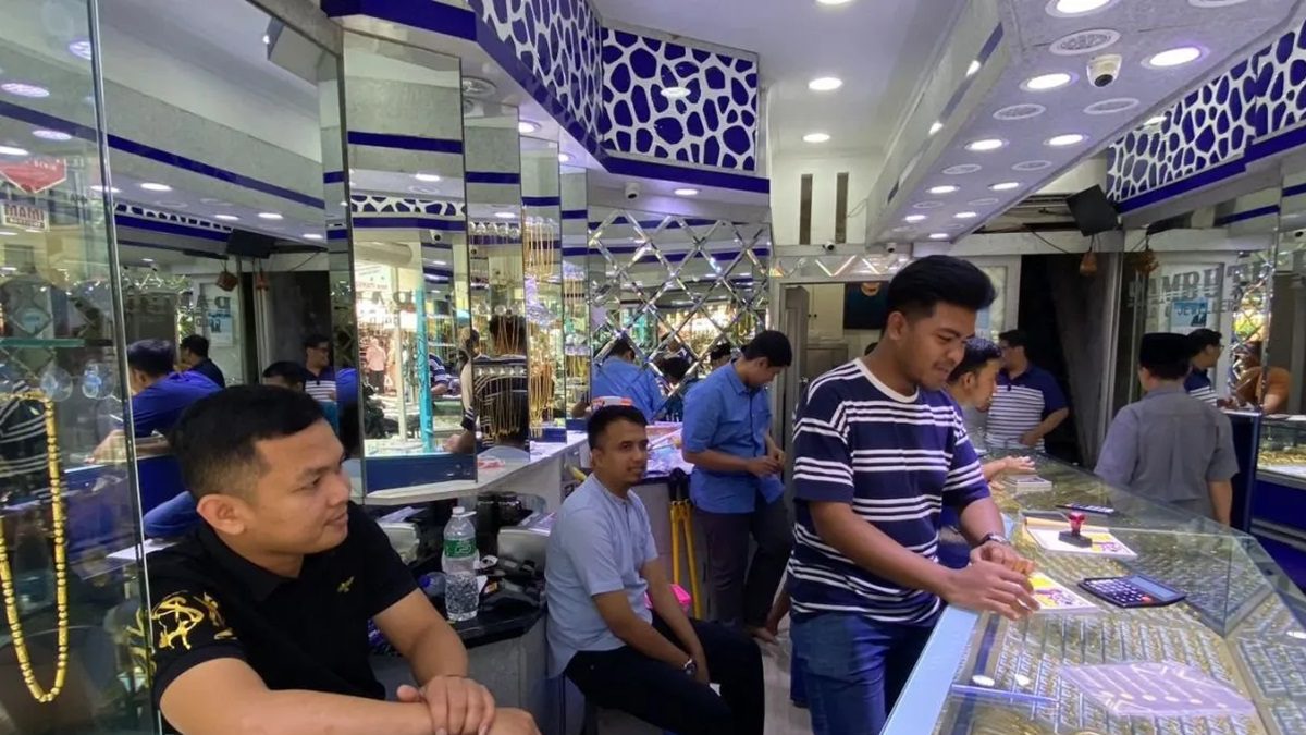 Pertokoan jual beli emas dan perhiasan yang berada di sekitar Taman Jam Gadang Bukittinggi tampak diramaikan dengan rutinitas penjualan emas itu.
