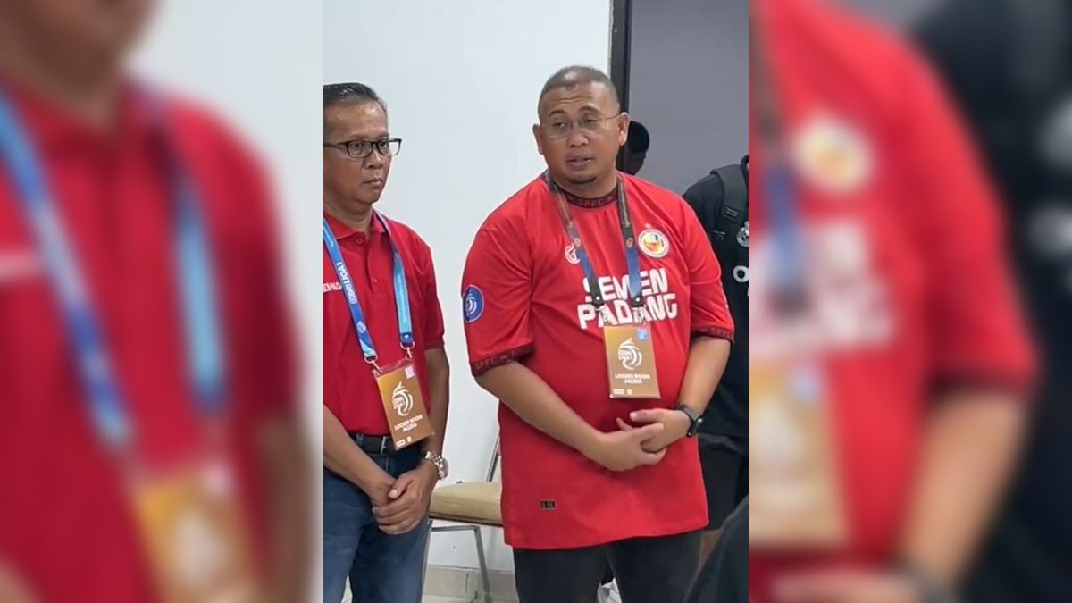 Penasihat Semen Padang FC Andre Rosiade berikan brainstorming kepada para pemain Semen Padang usai laga melawan Persis. (dok. tangkapan layar)