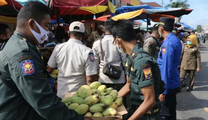 PARIAMAN, RADARSUMBAR.COM-Satuan Polisi Pamong Praja dan Pemadam Kebakaran (Satpol PP dan Damkar) Kota Pariaman, Sumatera Barat menertibkan pedagang kaki lima (PKL) di tepi jalan depan Pasar Rakyat Pariaman karena mengganggu arus kendaraan di daerah itu.