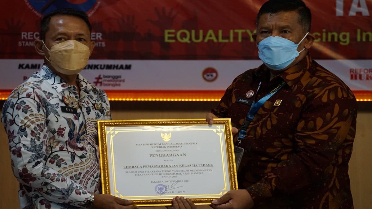 Berdasarkan Surat Keputusan Menteri Hukum dan HAM RI Nomor: M.HH-01.HA. 03.07 Tahun 2021 tentang Penetapan Pelayanan Publik Berbasis HAM Tahun 2021, Lapas Kelas II A Padang merupakan salah satu UPT (Unit Pelaksana Teknis) yang berhasil meraih penghargaan “Pelayanan Publik Berbasis HAM Tahun 2021” pada Jumat (10/12/2021).
