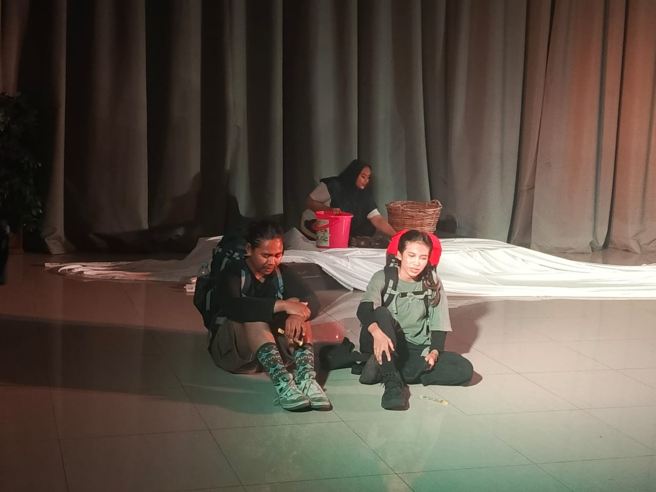 Unit Kegiatan Seni Universitas Baiturrahmah yang tampil pada malam Jumat mengangkat karya Rahmat Hidayat dengan judul Krisis.