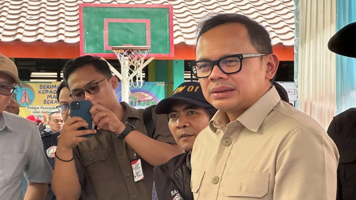 Wamendagri Bima Arya Sugiarto (kanan) saat meninjau tempat pemungutan suara (TPS) 006 di SDN Pegangsaan 01 Pagi, Kelurahan Pegangsaan, Jakarta, Rabu (27/11/2024). (ANTARA/Rio Feisal)