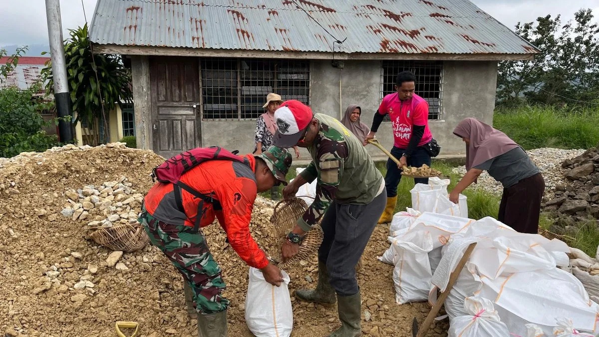 Ia mengatakan dibutuhkan material pasir batu yang cukup untuk pengerasan jalan. Sehingga gotong royong sebagian ditugaskan untuk melansir material dari tempat yang sudah disediakan baik batu maupun pasir.