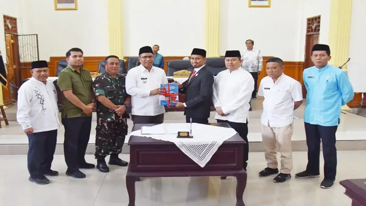PARIAMAN, RADARSUMBAR – Wakil Walikota Pariaman, Mulyadi, menyampaikan Laporan Keterangan Pertanggungjawaban (LKPJ) Kepala Daerah atas pelaksanaan Anggaran Pendapatan dan Belanja Daerah (APBD) Kota Pariaman Tahun Anggaran (TA) 2024 kepada Dewan Perwakilan Rakyat Daerah (DPRD) Kota Pariaman, pada Jumat (21/03/2025).