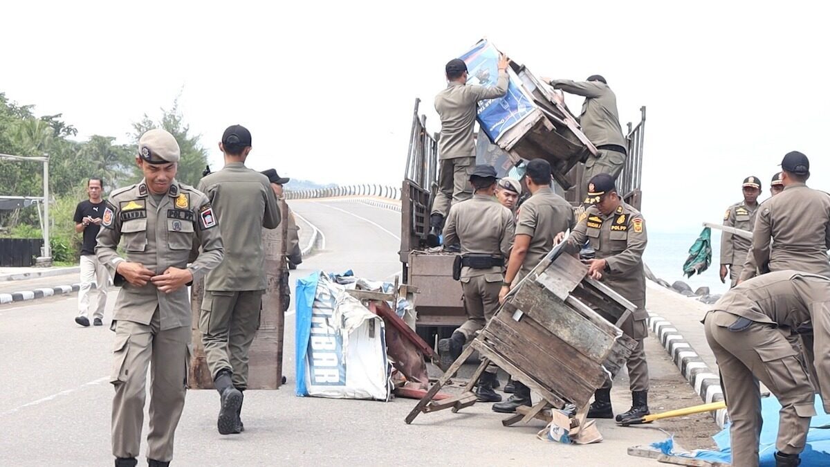 PADANG, RADARSUMBAR.COM — Satuan Polisi Pamong Praja (Satpol PP) Kota Padang bersama Satuan Kerja Keamanan dan Ketertiban Kota (SK4) kembali menertibkan dan membongkar tiga bangunan liar (bangli) yang berdiri di atas fasilitas umum di kawasan Pantai Padang, tepatnya di belakang Hotel Pangeran, Senin (28/7/2025).