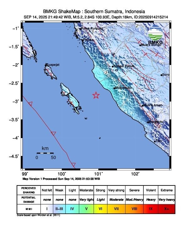 PADANG, RADARSUMBAR.COM – Gempa bumi tektonik mengguncang wilayah Pantai Barat Daya Kota Mukomuko, Bengkulu, pada Minggu (14/9/2025) sekitar pukul 21.49 WIB. Namun getaran gempa dirasakan hingga ke Kota Padang, Sumbar.