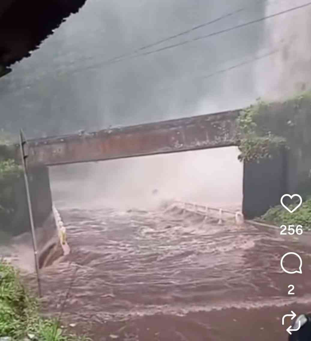 Dilansir dari akun Instagram @infosumbar, peristiwa itu terjadi pada Minggu (23/11/2025) ketika debit air meningkat tajam. Air yang turun dari tebing mengalir deras ke permukaan jalan sehingga menghambat arus lalu lintas.