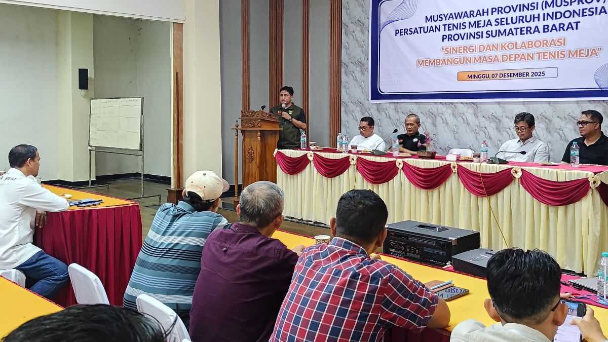 Ketua KONI Sumbar, Hamdanus, turut menyampaikan selamat atas terlaksananya Musprov. Ia mengingatkan bahwa Porprov 2026 semakin dekat, dan tenis meja merupakan cabang olahraga yang selalu menarik untuk dipertandingkan.