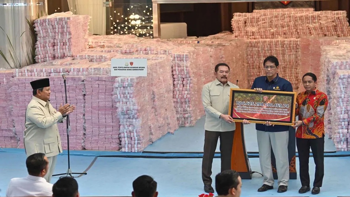 Dana tersebut terdiri atas Rp2,34 triliun dari penagihan denda administratif kehutanan oleh Satgas Penertiban Kawasan Hutan (PKH) terhadap 20 perusahaan sawit dan satu perusahaan tambang nikel, serta Rp4,28 triliun dari penyelamatan keuangan negara atas penanganan perkara tindak pidana korupsi.