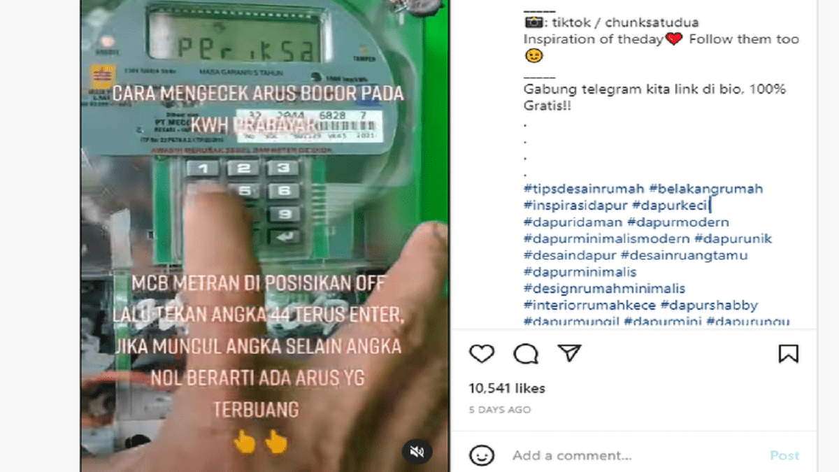 JAKARTA, RADARSUMBAR.COM – Video memperlihatkan cara mengecek kebocoran arus listrik di meteran prabayar, viral di media sosial, Selasa (8/2/2022). Sebagaimana diunggah oleh akun Instagram berikut.