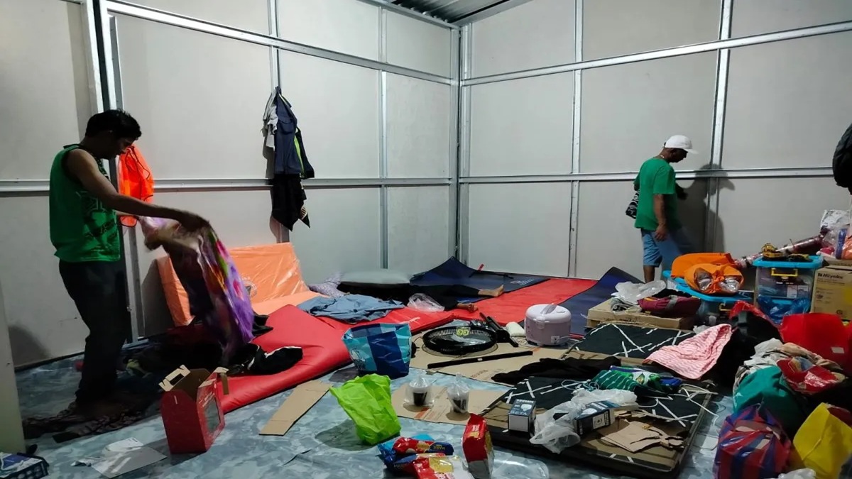 Sesampainya di lokasi huntara, mereka langsung menyusun barang-barang di dalam unit hunian yang disediakan.