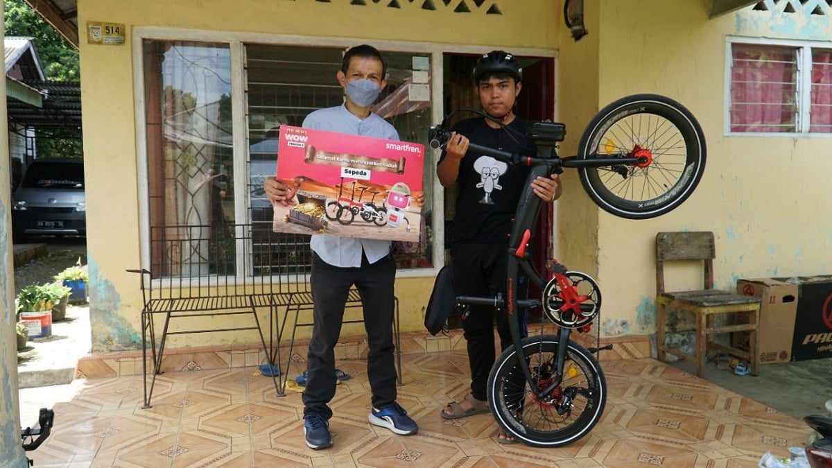 PADANG, RADARSUMBAR.COM – Wahyudi Maulana Chaniago mengatakan sangat bahagia ketika mengetahui dirinya menjadi salah satu pemenang Smartfren Rejeki WOW Treasure Hunt Periode ke-3. Semua yang ikutan program bagi-bagi hadiah ini memang bisa menang dengan mudah, dan Wahyudi adalah salah satu yang mendapatkan hadiah sepeda.