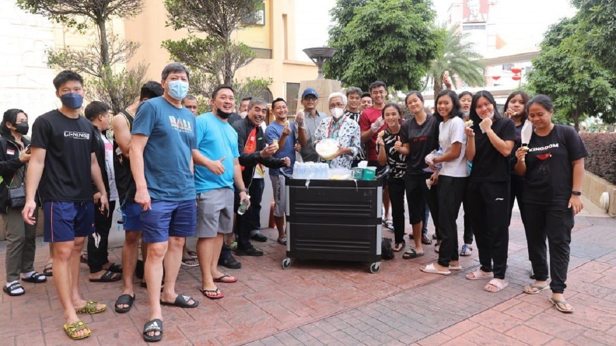 Tak hanya itu, para pemain, pelatih, dan tim pendukung masih mendapat sajian istimewa. Yaitu durian musang king yang begitu terkenal itu. Tim bulutangkis langsung menyerbu untuk menikmati legitnya buah durian itu di halaman hotel.