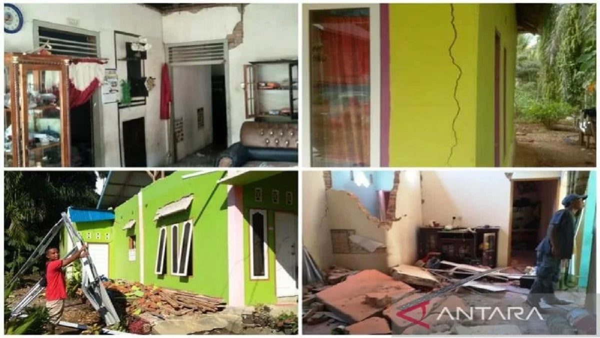 Kerusakan rumah, katanya dinding bagian atas kiri kanan runtuh, dinding kamar jebol, ruang tamu retak lebar dan seluruh dinding bagian rumah retak-retak dan tidak bisa di huni karena dikhawatirkan roboh karena tidak ada kekuatannya lagi.