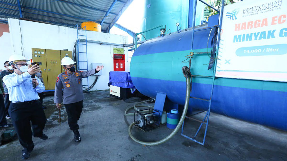 BALI, RADARSUMBAR.COM – Kapolri Jenderal Polisi Listyo Sigit Prabowo meninjau langsung pabrik minyak goreng PT Sawit Tunggal Arta Raya (STAR) Bali, di Pelabuhan Benoa, Kota Denpasar, Bali, Jumat (18/3/2022).