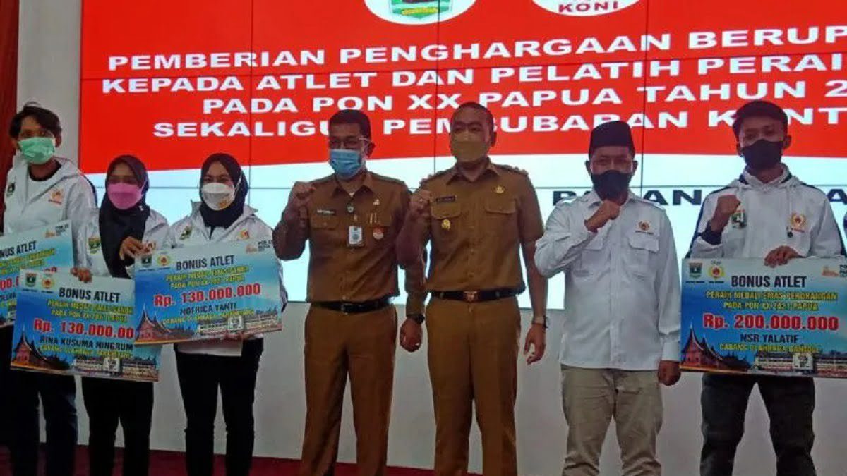 PADANG, RADARSUMBAR.COM – Pemerintah Provinsi Sumatera Barat akhirnya mencairkan bonus atlet peraih medali di Pekan Olahraga Nasional (PON) Papua 2022 di Auditorium Gubernuran Sumbar pada Senin (4/4/2022).