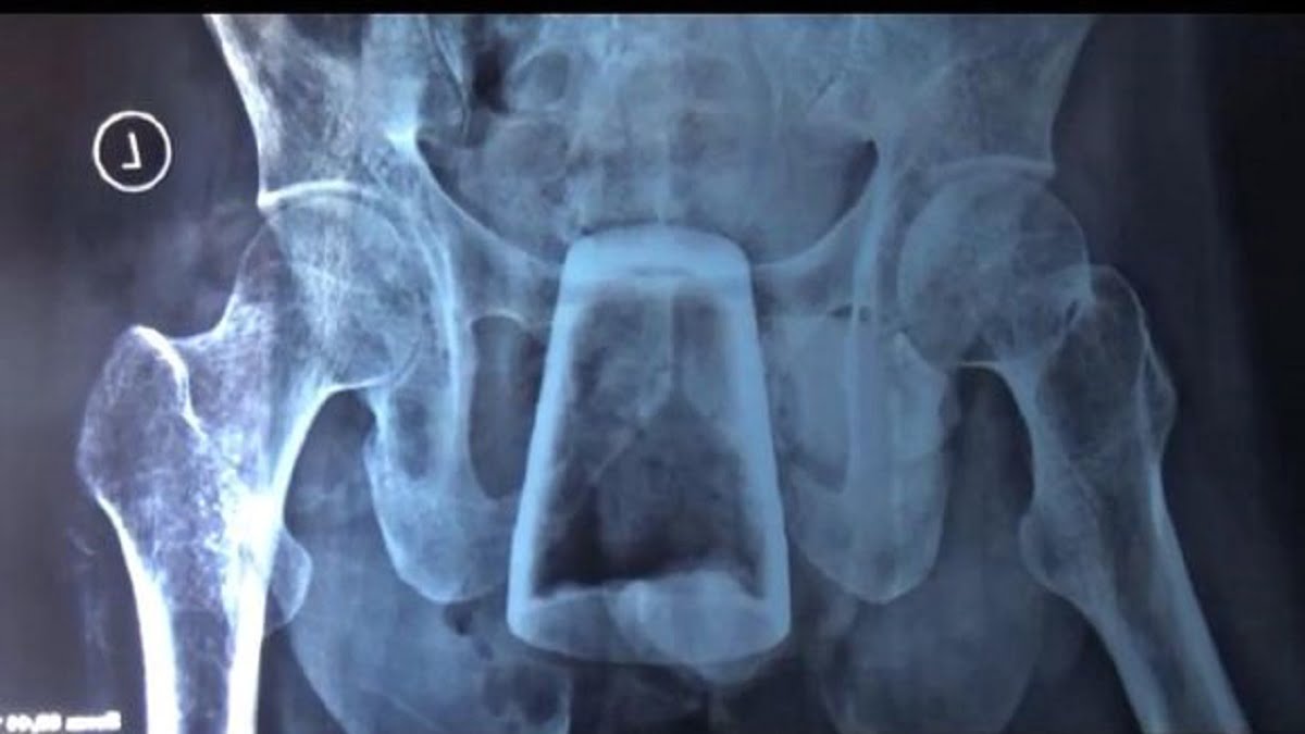 Hasil rontgen yang diungkap para dokter menunjukkan gelas tersebut ada di rektum, yakni bagian akhir usus besar yang dekat sekali dengan usus. Dugaan paling logis menurut kedokteran, benda tersebut dimasukkan sendiri oleh pasien.