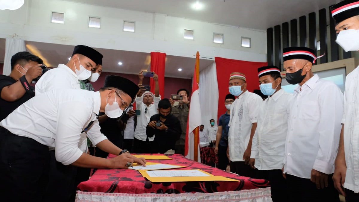 DHARMASRAYA, RADARSUMBAR.COM – Sebanyak 391 orang yang tergabung dalam kelompok jaringan NII (Negara Islam Indonesia) mulai hari ini menyatakan dirinya kembali ke NKRI yang berlandaskan Pancasila dan Undang-undang 1945.