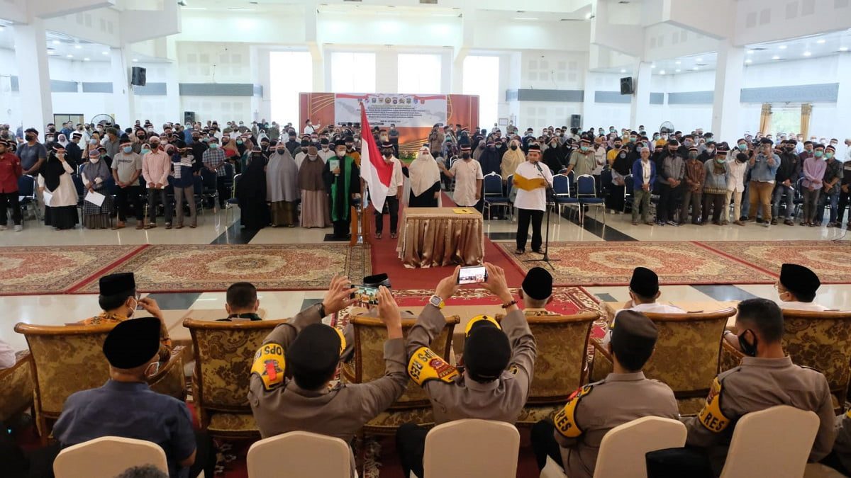 TANAH DATAR, RADARSUMBAR.COM – Sebanyak 518 orang yang tergabung dalam kelompok Negara Islam Indonesia (NII), hari ini kembali melakukan cabut ba’iat untuk kembali ke Negara Kesatuan Republik Indonesia (NKRI) di gedung Maharajo Dirajo, Batusangkar, Tanah Datar, Jumat (29/4/2022) sore.
