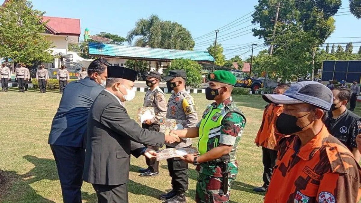 LUBUKBASUNG, RADARSUMBAR.COM – Kepolisian Resor Agam, Sumatera Barat memberikan penghargaan kepada tim yang pertama menemukan keberadaan atlet paralayang yang hilang kontak karena gagal landing di Hutan Lindung Anak Aia Paudangan Kecamatan Matur, Sabtu (7/5/2022).